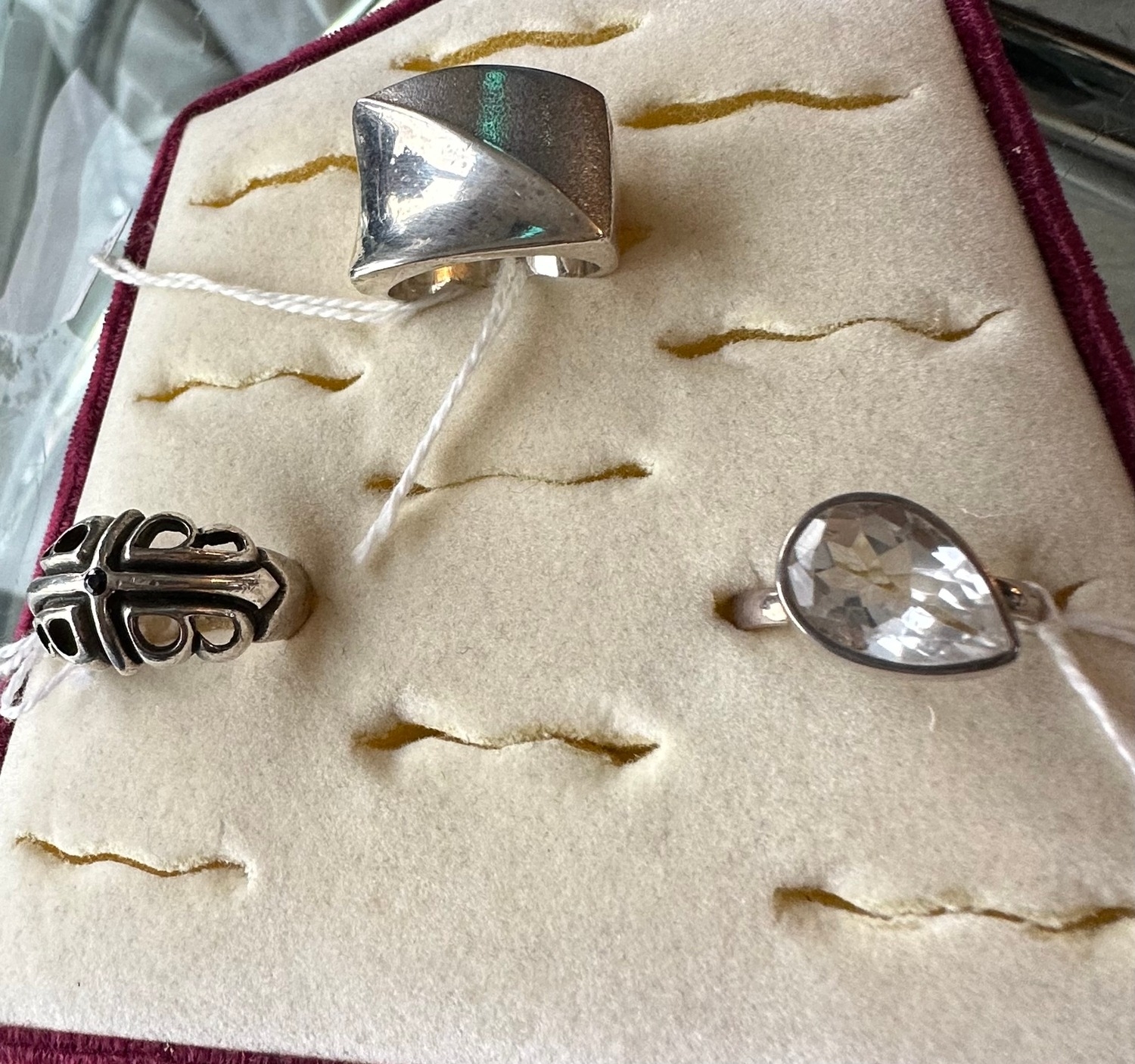heavy 925 silver rings selection, sizes, P, S & U (top to bottom), pad not included
