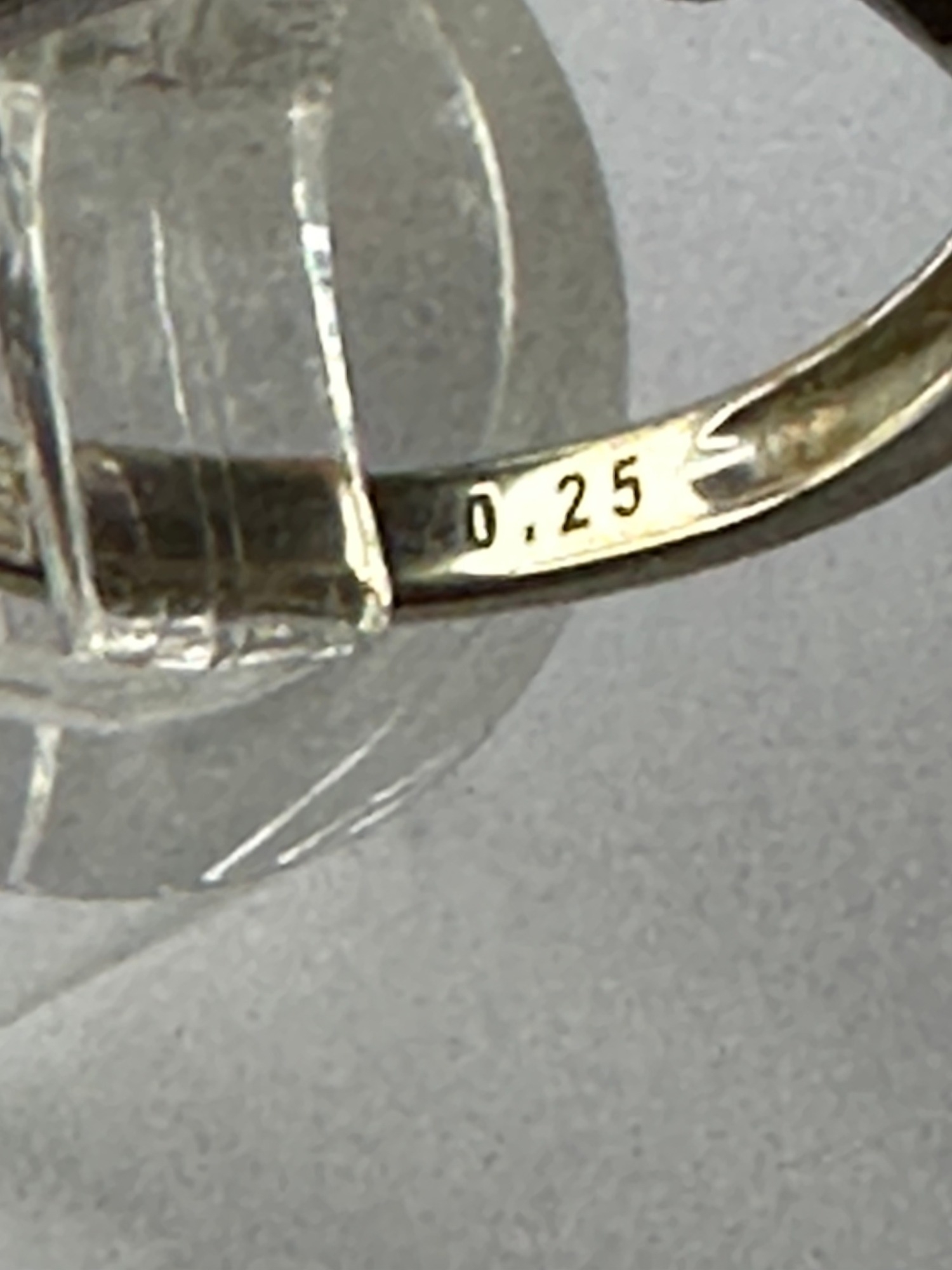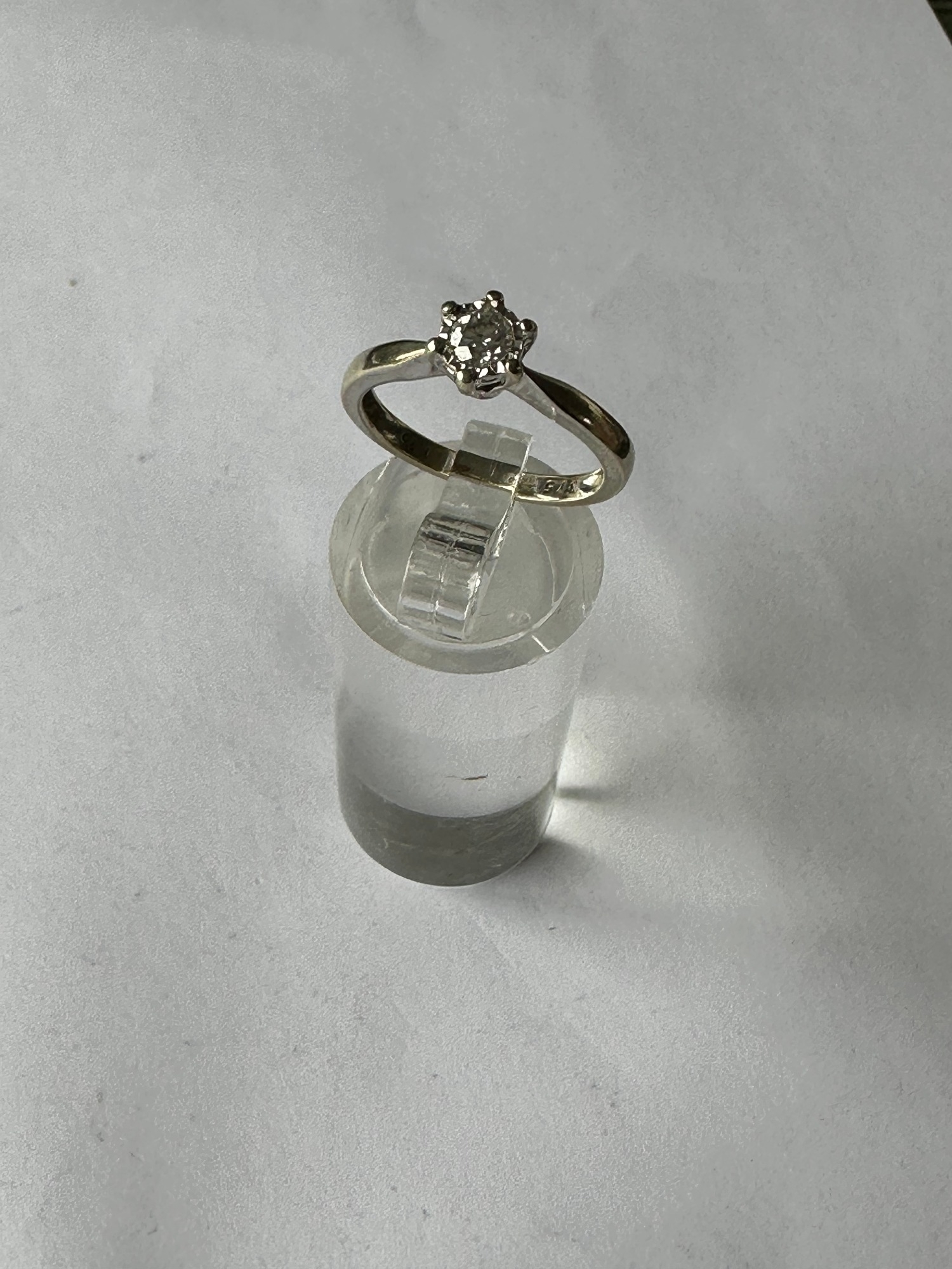 9k (stamped 375) White gold 1/4 carat (stamped .25) diamond engagement ring, size L, 2.3g, diamond has good clarity