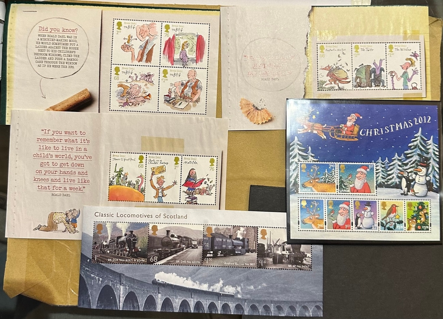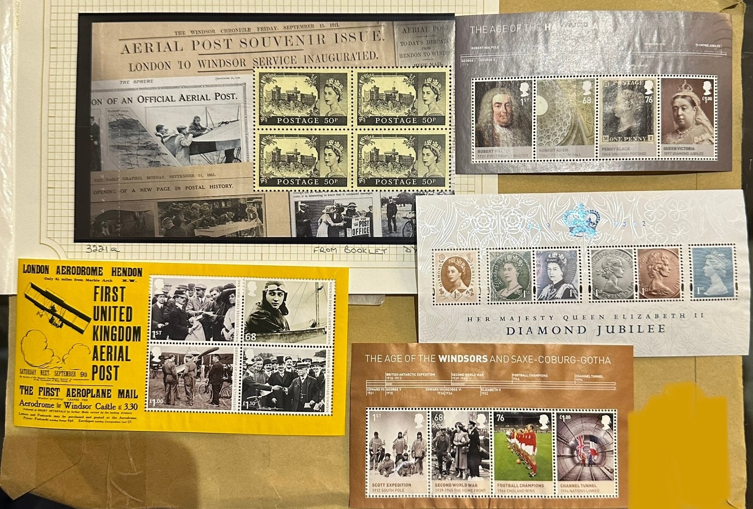 Mint (no gum) mini sheets and prestige booklet panes with unfranked stamps, face value approx. �54