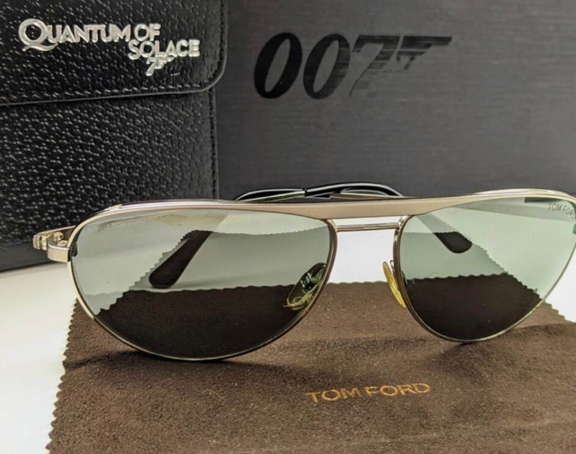 TOM FORD Sunglasses "William" 007 James Bond style Quantum of Solace. Silver frame. Italian designer glasses with brown case. Black leather wallet and black box NOT INCLUDED for photos only