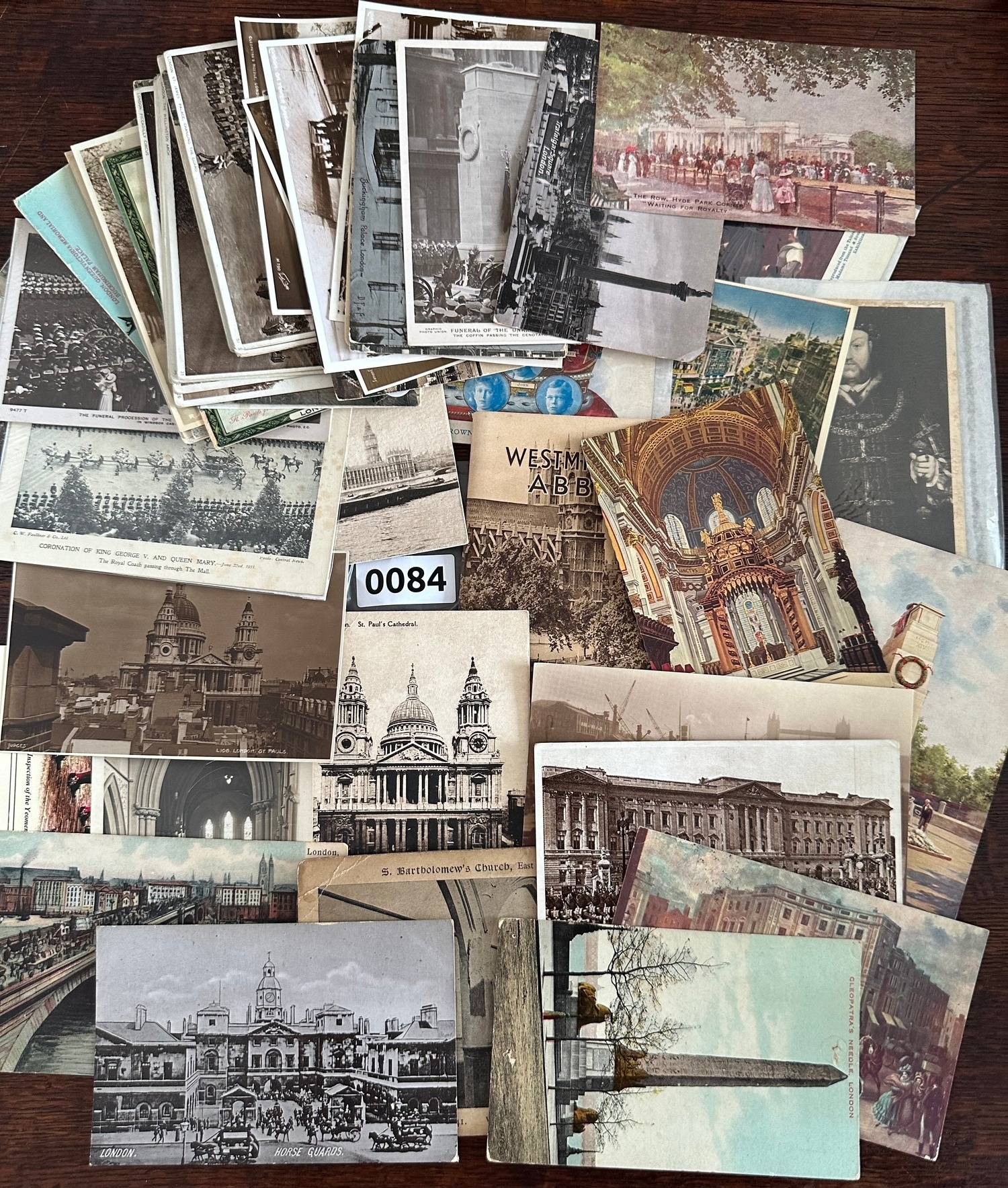 56 Antique, Edwardian and Vintage Postcards of old London and Royal Family together with Westminster Abbey " Photocrom Midget View Book ". Mix of used with stamps and unused