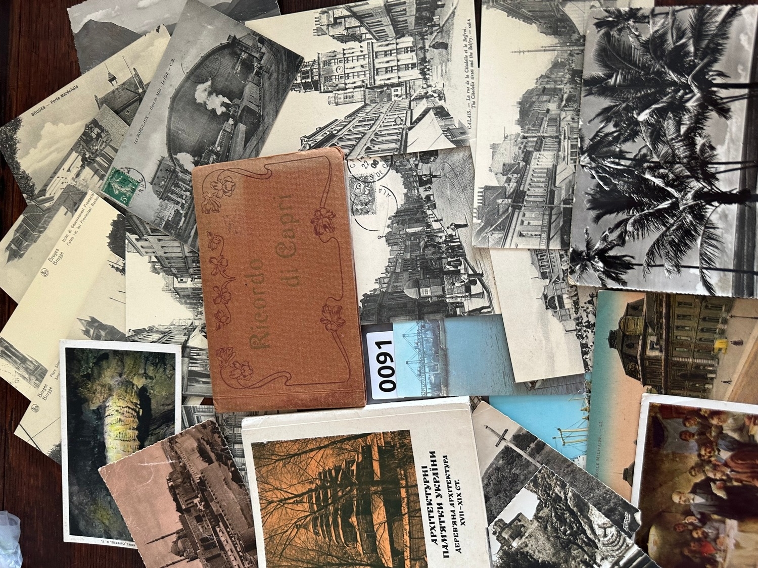 small collection of worldwide vintage post cards including 20 Ukraine ( wooden architecture ), 12 Capri topographical in booklet, 6 Calais, Paris, 4 Bruges and 11 others