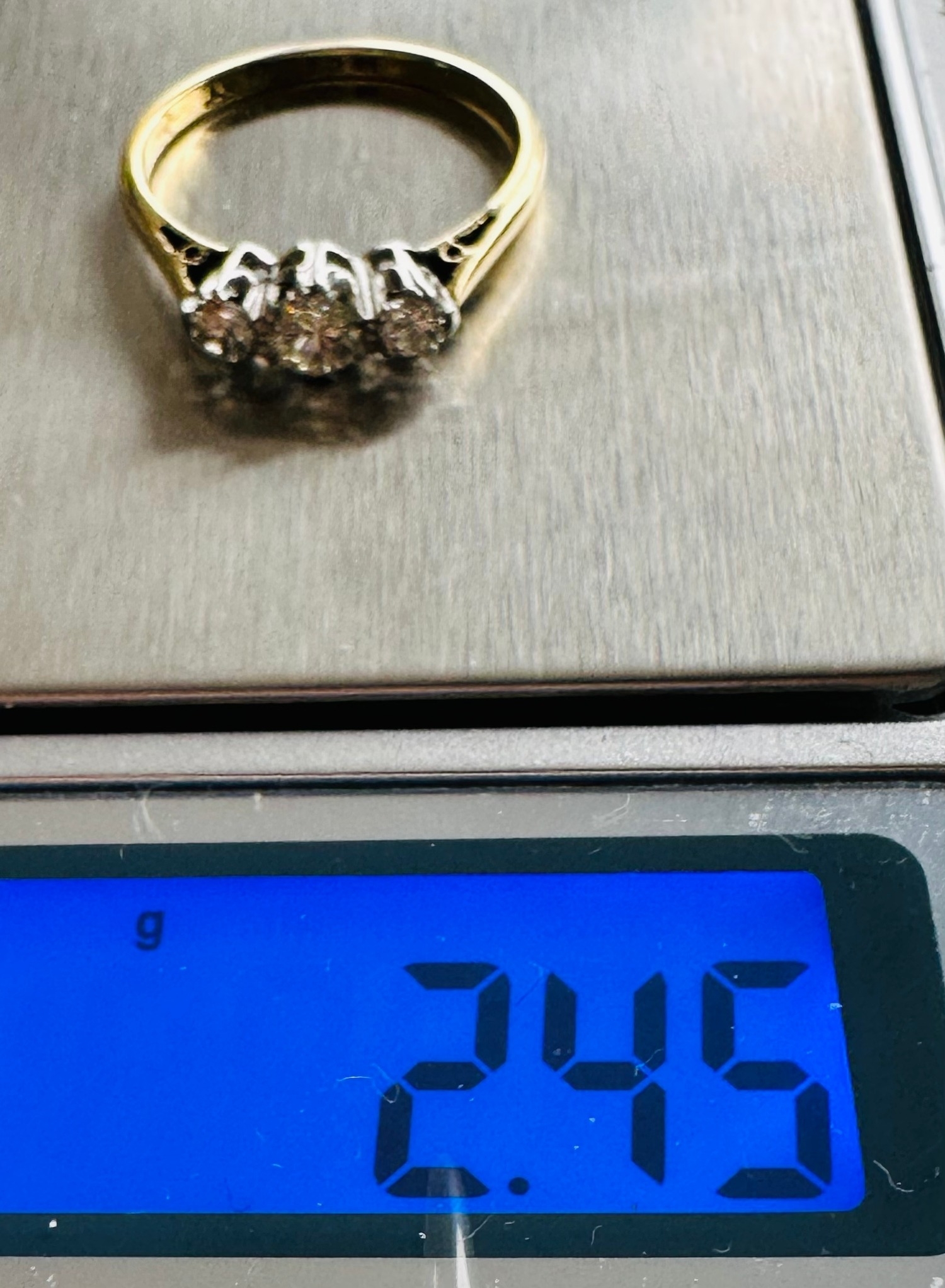 18ct gold platinum diamond trilogy ring, est. c. half carat total dia